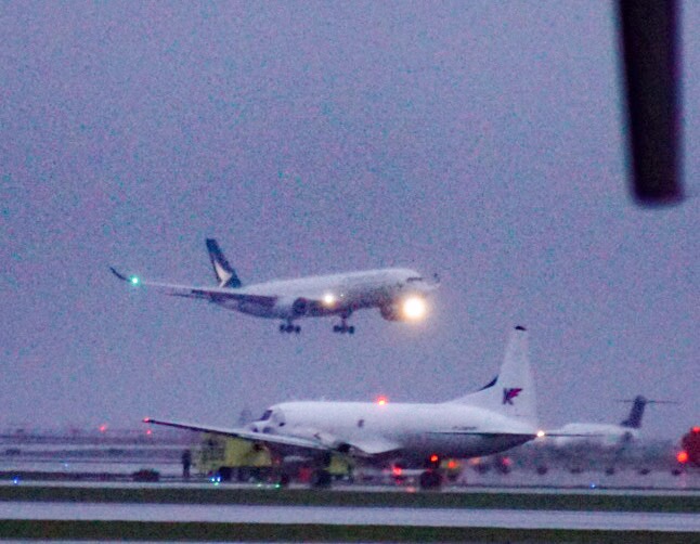 Tuesday March 28 2017 marked the first commercial flight of the Airbus A350 into YVR and Canada (by Cathay Pacific Airlines). Like any other time a new aircraft type flies into YVR or any other airport there are usually “Plane Spotters” there to see and photograph the aircraft/event. The weather Tuesday was absolutely terrible so only the diehard spotters made it out for the arrival and or departure. YVR treats the plane spotting community pretty well especially on these special occasions and Tuesday was no different. Coffee, doughnuts and some swag were provided for the spotters by YVR.